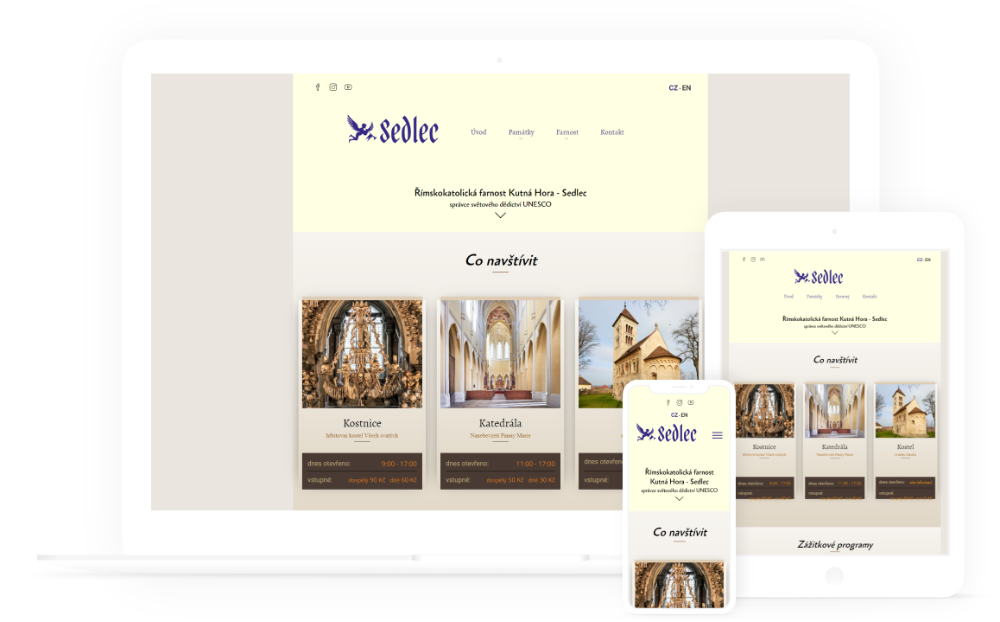 Tento web jsme vytvořili pro farnost a týká se oblasti cestovního ruchu. Je specifický hned v několika ohledech, zejména vysokou návštěvností (z velké části ze zahraničí) a multijazykovým provedením (je určen i pro cizince).